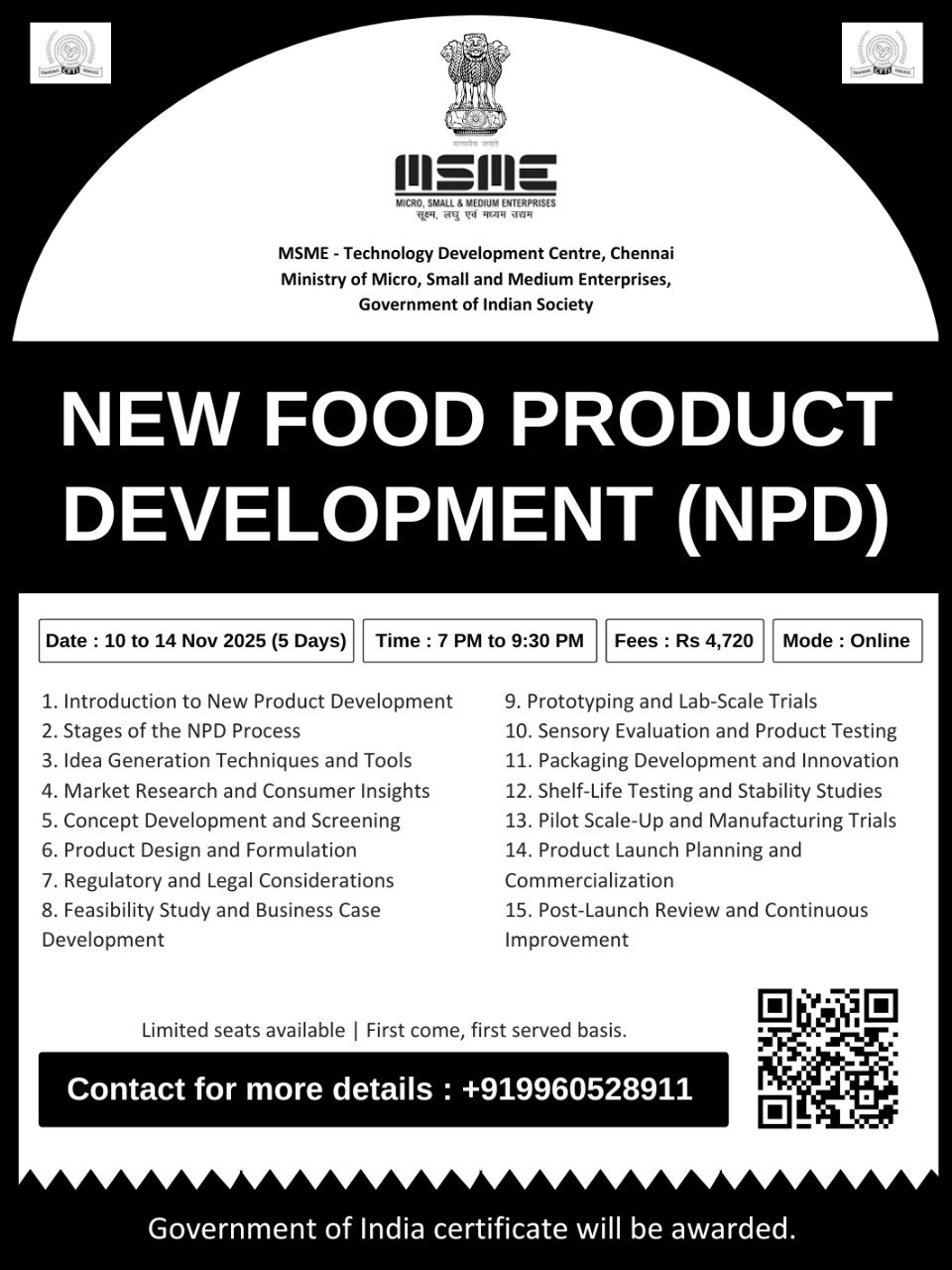 5 Days Online training program on New Food Product Development by MSME-Technology Development Center, Chennai.